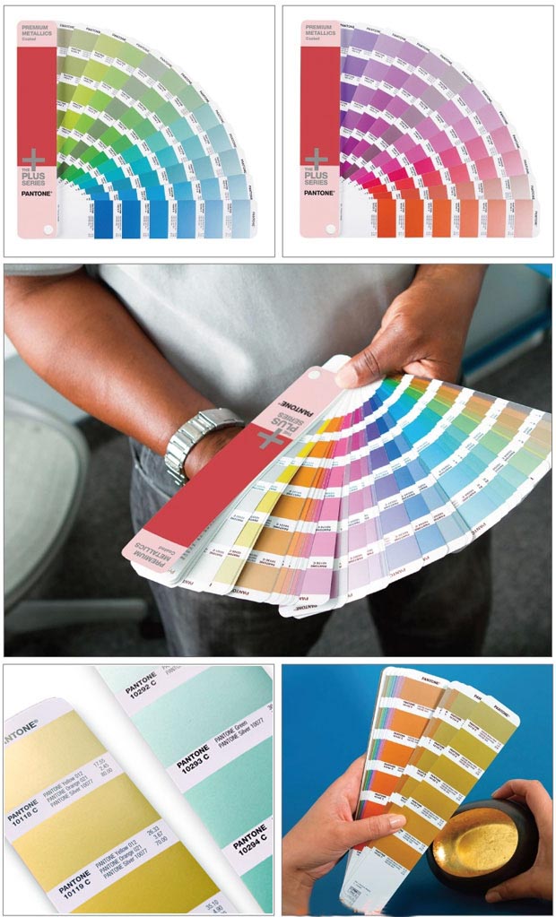 全新的Plus系列金属色— 光面铜版纸[Plus SERIES PREMIUM METALLICS]包含300种光彩夺目的金属色,以满足人气急速攀升的特效油墨需求。Plus系列金属色更闪亮耀眼,可轻松涂层而丝毫无损光泽度。其印后寿命更长,无需担心脱色或产生斑点。扇形指南按色谱顺序排列,使得色彩选择更加直观。提供油墨配方。包含设计软件。只提供光面铜版纸。